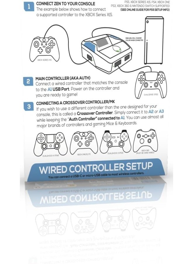 The Cronus Zen Controller Emulator / Gaming Adapter empowers you to break free from platform limits. Plug in any supported controller, mouse + keyboard, or racing wheel and use them seamlessly across PlayStation, Xbox, Nintendo, and PC platforms.