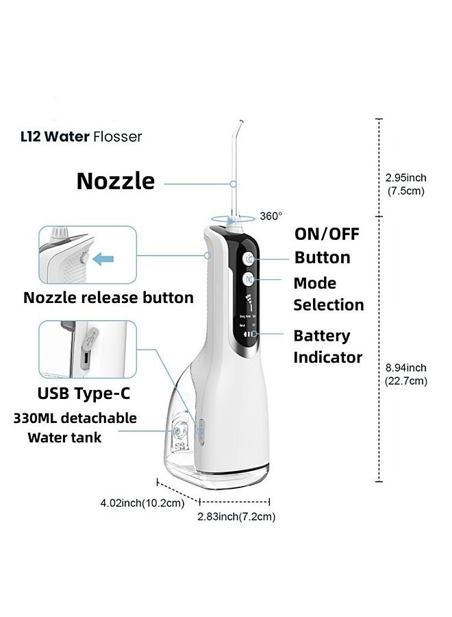 Dental Water Flosser - Oral Irrigator - Electric Rechargeable - Cordless Teeth Cleaner - Remove Tartar - 330ml