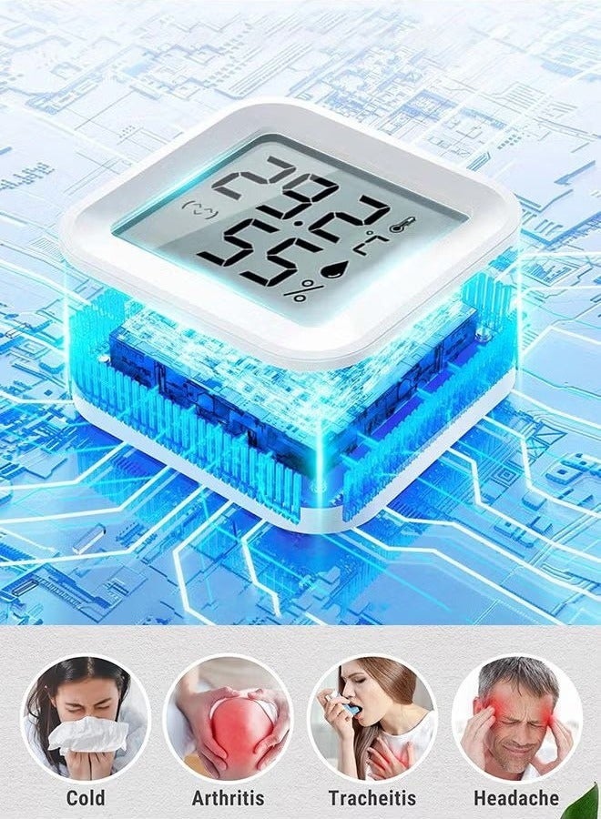Face Icon Comfort Indicator: Humidity temperature gauge features face icons to indicate DRY/COMFORT/WET air conditions, quickly informs you how to adjust your humidifier or dehumidifier to achieve optimal comfort. Highly Accurate Sensors: This temperature humidity sensor features a high accuracy of ±1°F/°C and ±2%-3%RH, making it ideal for measuring dynamic environments like greenhouses. Fast Refresh Rate: This digital indoor thermometer refreshes every 10 seconds to provide the latest updates for temperature and humidity readings. Compact Display with Large Digits: This digital thermometer indoor outdoor features a compact LCD display with large bold digits, allowing you to read the room thermometer indoor from any angle and distance. Multiple Placement Options: This humidistat has 3 placement options - Tabletop Stand / Magnetic Back / Hanging Mount, place the wall thermometer anywhere you wish such as living room, baby room, kitchen, greenhouse, guitar room, office or cellar.
