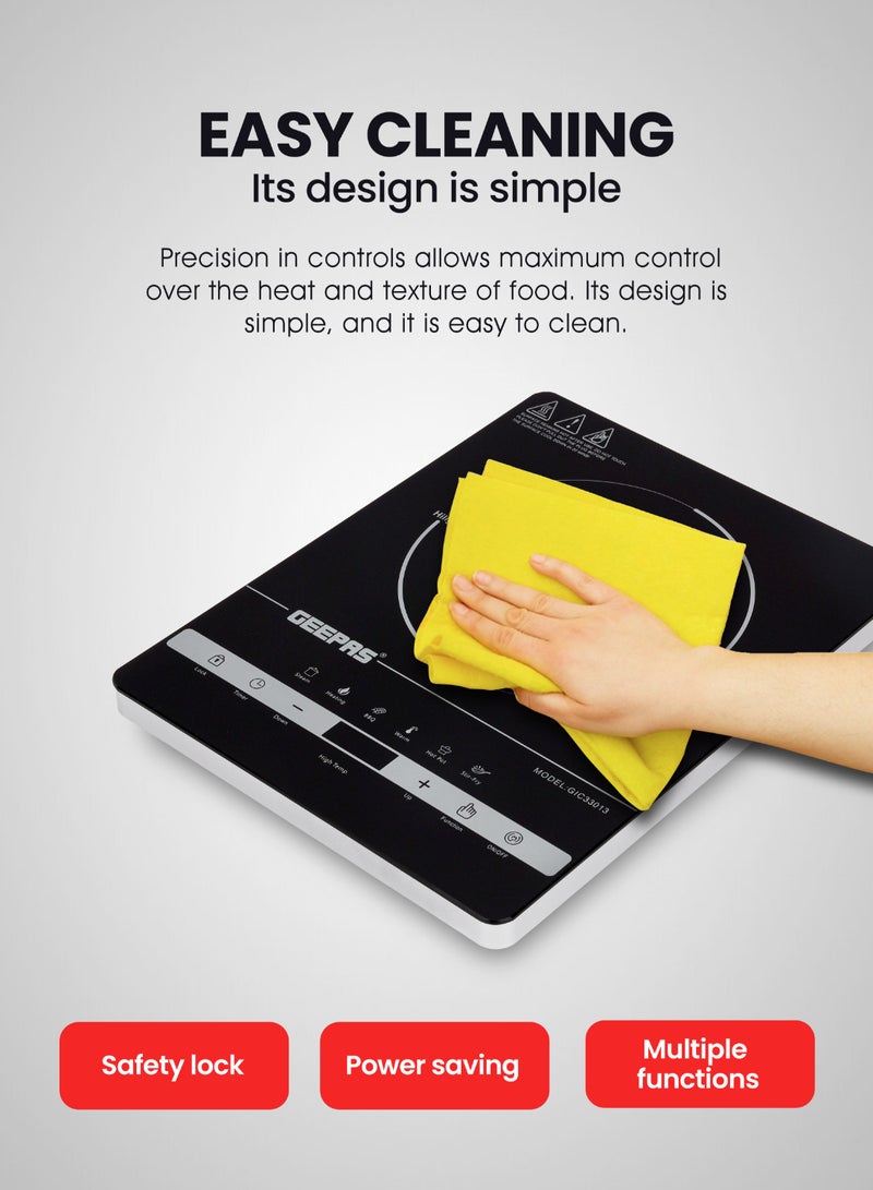 Make cooking more enjoyable and easier. The Geepas single-hob infrared cooker with digital control is constructed from the highest-quality materials and was designed with accuracy and safety in mind. The modern and stylish cooker in black enhances the look of your kitchen countertop and is made of top-quality materials. The single-hob infrared cooker has an induction surface with responsive touch and a 4-digit display. This allows for multiple cooking functions with adjustable temperatures, timers, and wattages. This infrared cooktop meets international quality standards with multi-safety devices for safety, performance, and extra reliability. Powered by a 2200-watt infrared cooker, this single-hob infrared cooker saves a great deal of your time in the kitchen and greatly reduces energy consumption. Due to its innovative design, flat bottom, and high quality, this single-hob infrared cooker keeps utensils stable and in place while cooking. A stylish black top plate not only makes this cooker look stylish, but it is also extremely efficient and durable enough to use on a daily basis. The cooktop is also easy to clean and maintain, and it can last a lifetime. The compact cooker fits perfectly in homes, studios, apartments, etc. The infrared cooker is made from the finest quality materials that provide durability and are long-lasting. This infrared cooker is a thoughtful gift option that is sure to impress your loved ones with its simple and elegant design. The Geepas single-hob infrared cooker weighs 2.775 kg and comes with a 2-year manufacturer's warranty.