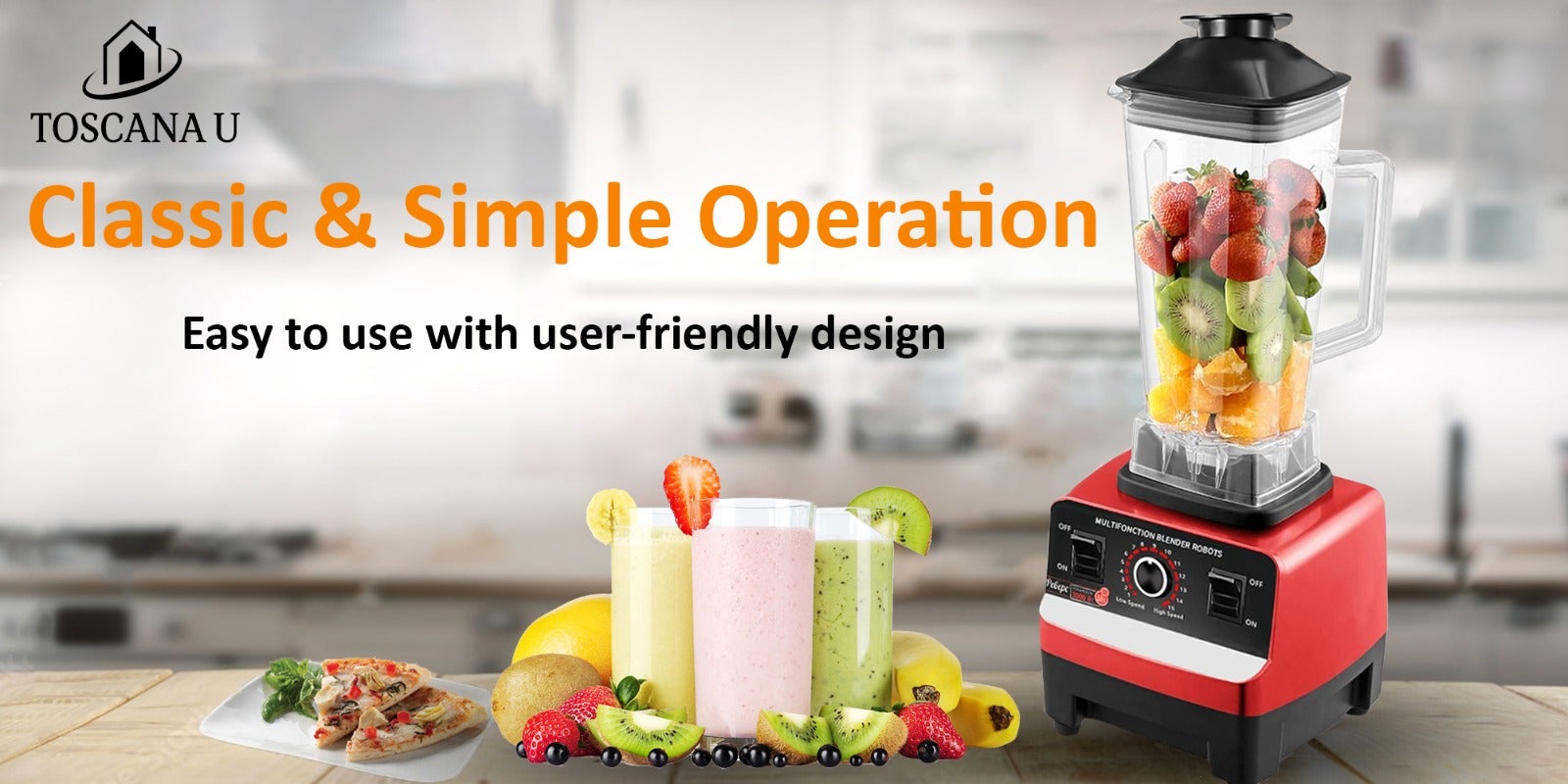 * Multi-purpose: juice, grind spices, crush ice and more * Comes with 2 liter large blender bowls and 1 small grinding bowl * Food-safe rubber cup lid and non-slip base * Large and durable 2.5 bowl * 15 different speeds, 3 control buttons * Power: 1200W, Speed: 50,000 rpm * Purees food in seconds to extract maximum nutrients