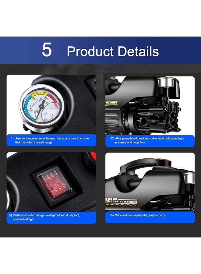1. 【Powerful & Professional】Get professional-level cleaning power with the electric pressure washer. It perfect for cleaning decks, terraces, driveways, siding, sheds, cars, and outdoor power equipment. Just be sure to empty the air from the hose before use to ensure optimal pressure. 2.【Upgraded Leak-Free Connections】The pressure washers features professional-grade metal garden hose connectors and a metal water outlet to prevent leaks. The metal brass adapter is sturdier than plastic and won't break from the bottom. 3.【Multiple Safety Features】The electric pressure washers comes with multiple safety features, including an IPX5 waterproof case, gun safety lock, plug with GFCI protection, metal water inlet, and leakage-proof switch. These features not only ensure your safety but also extend the service life of the machine. The automatic total stop system shuts off the pump when the trigger is not engaged, saving energy and prolonging the pump life. 4.【Easy Set-up & Customer Service】The electric pressure washer is made with premium materials, and the connector can be easily joined to the hose and nozzle for a quick and effortless setup with no leaks. The pistol-style grip allows for efficient pressure washing. Plus, we offer a 12-month warranty and dedicated customer support. Contact us anytime for assistance with your product.