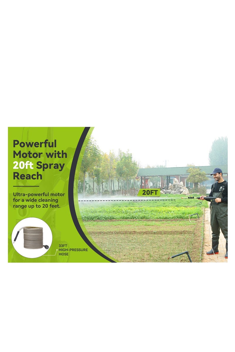 [Longer and Convenient Hose] The high-pressure hose of this power washer is 33ft long, And come with a 10 ft inlet hose, In addition, with a 36ft power cord, no need to worry about not being able to connect to a power outlet!