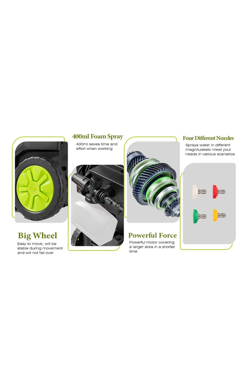 [High Pressure Washer] This car pressure washer provides powerful cleaning power, no matter the concrete surface, cracks, or stains, it can be cleaned easily, even the most stubborn grime can be handled quickly and effortlessly.