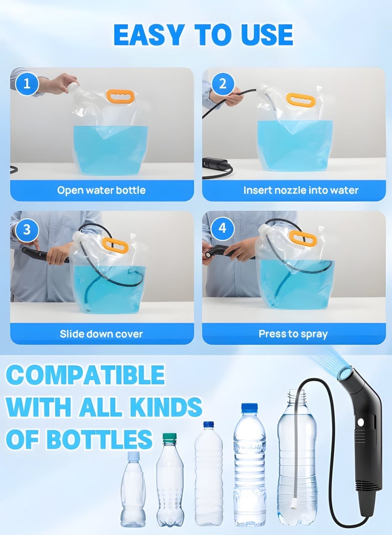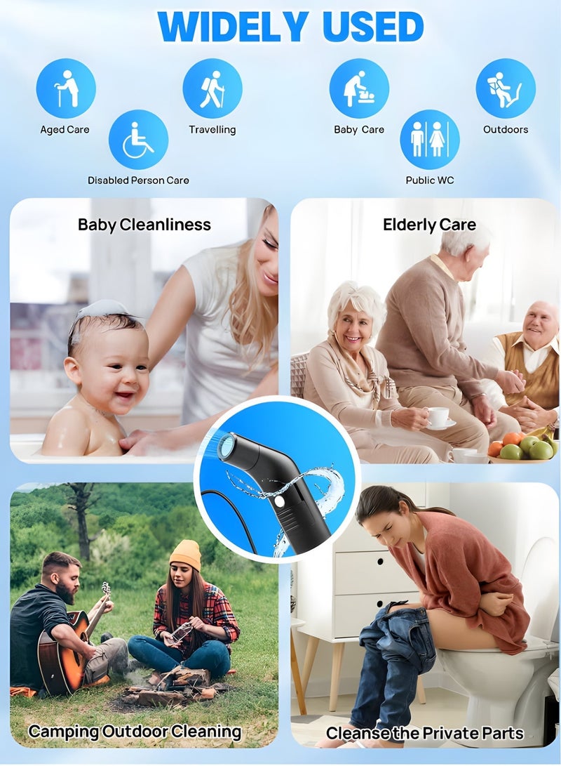 Compact, and Hygienic: Portable electric bidet set featuring a sleek design and fits neatly in the included storage bag. A hygienic and eco-friendly alternative to toilet paper, perfect for both men and women.