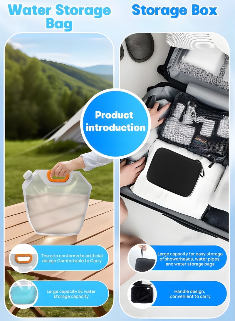 Long Hose and Large Water Capacity: Handheld portable shattaf equipped with a 1.2 meter hose and a built-in filter, paired with a 5 liter portable water bag, this bidet offers extended reach and generous water supply, no need for frequent refills.