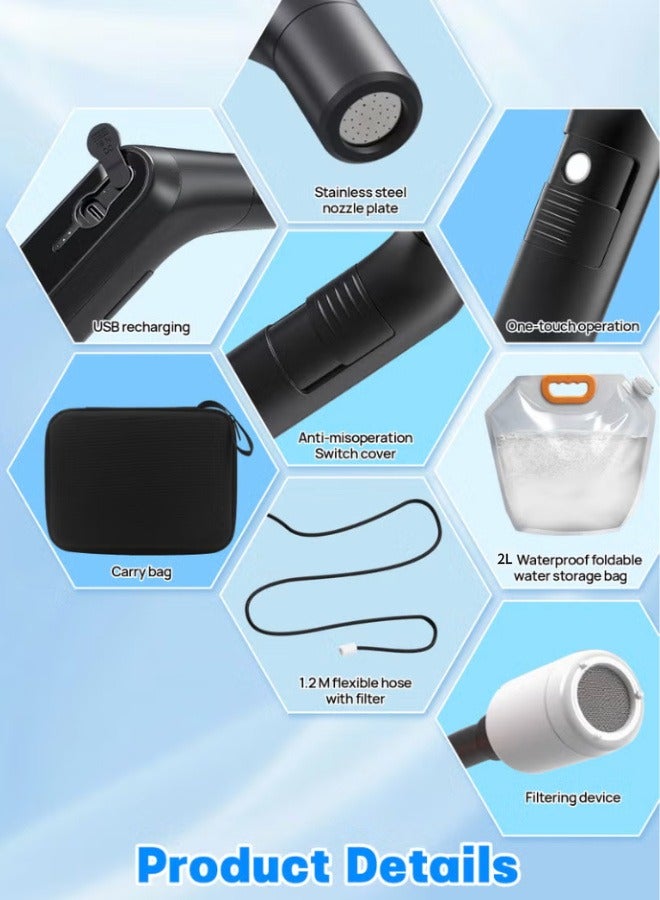 Portable Electric Bidet Set: Travel bidet kit includes a rechargeable electric bidet sprayer, a 2L collapsible water bag, and a storage bag, easy to carry, perfect for travel, camping, postpartum care, or as a personal travel shattaf at home or on the go.