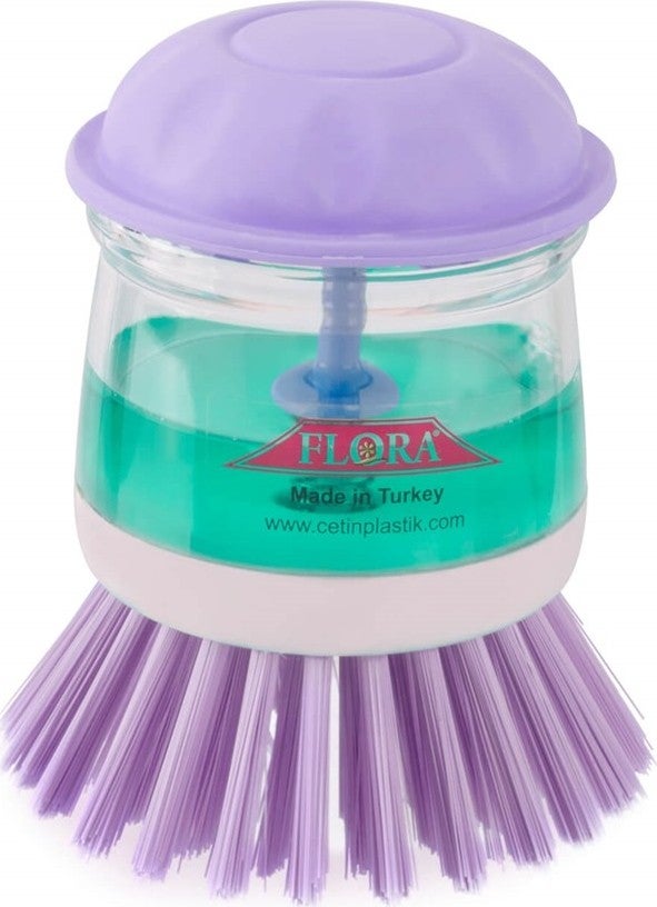 100% domestically produced kitchen and bathroom accessories, consisting of one-piece products, will be your best assistant in kitchen and bathroom cleaning. You can clean your dirty dishes effortlessly with the dish brush with the detergent chamber. By pressing the detergent pumping button on the top, you can brush with the detergent. The dish brush with the detergent chamber provides practical use.