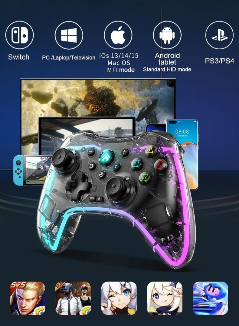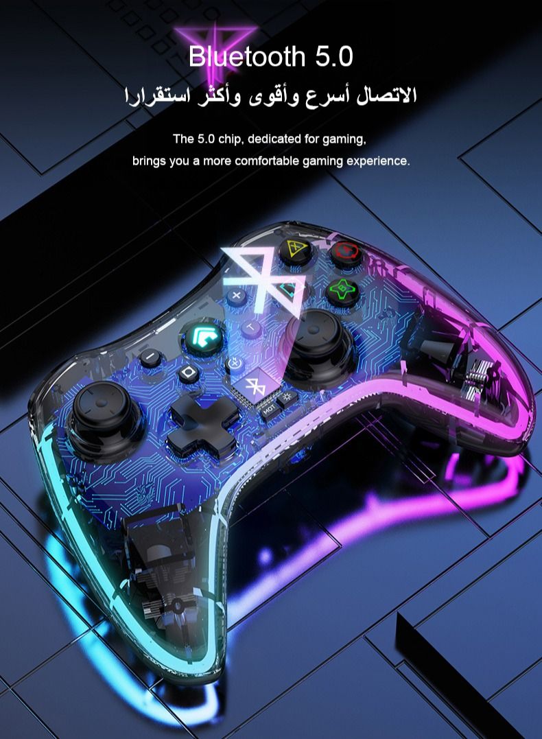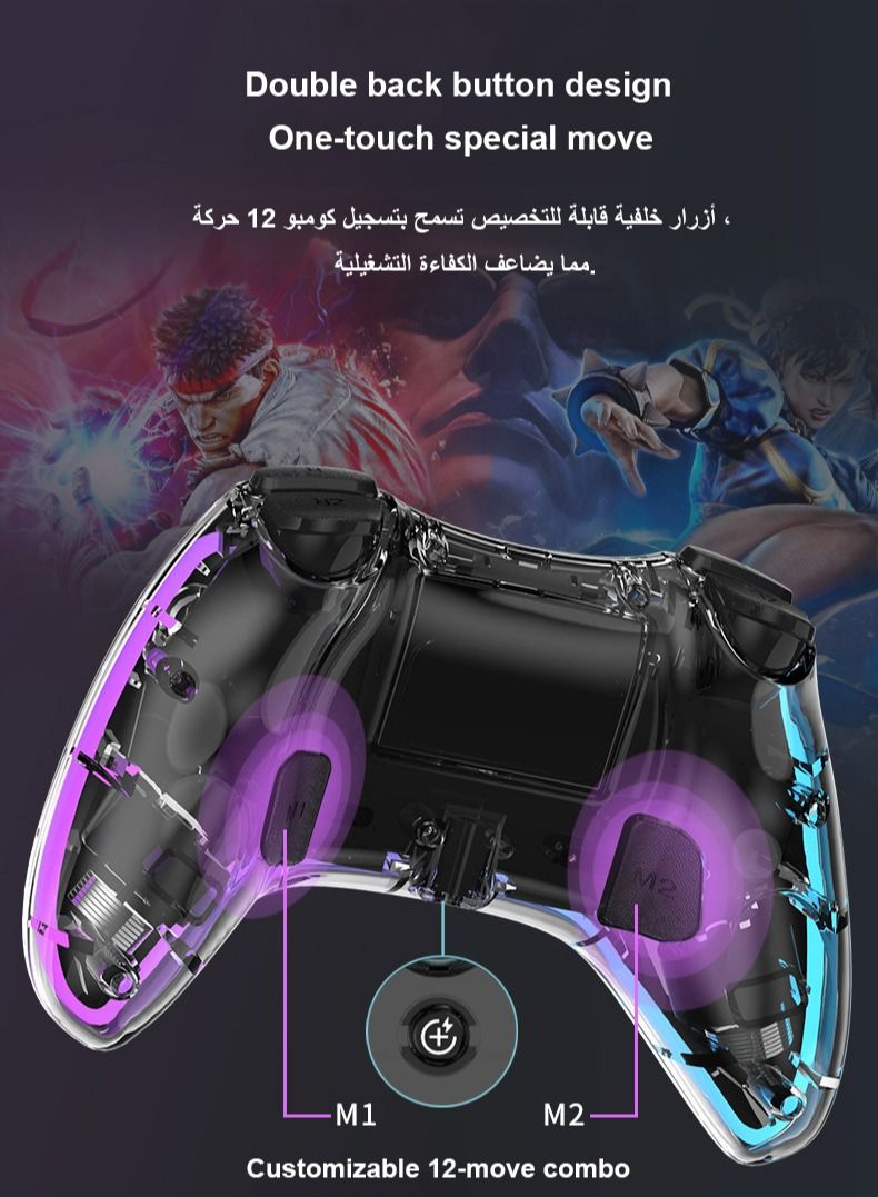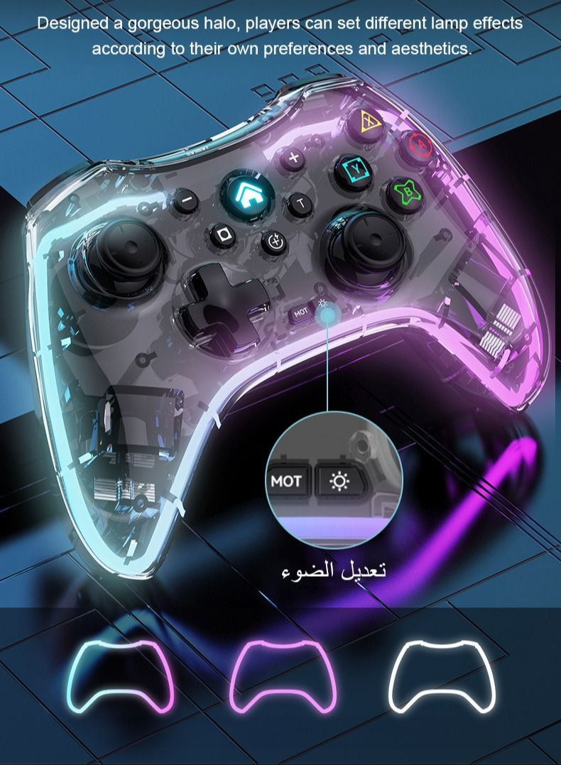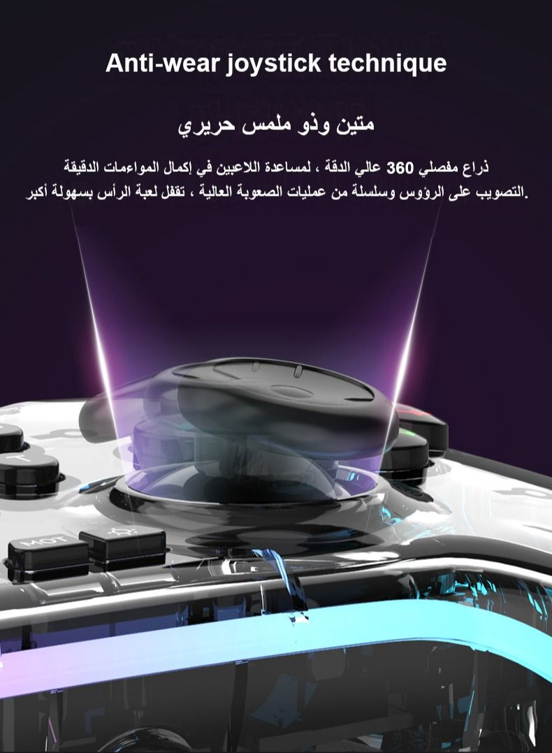 4.If the controller feels too bright or you need to use it for a short time, you can turn off the RGB lighting. The button is indicated by a sun icon and is located on the right side of the bottom middle two small buttons. Due to product size, this product is equipped with a 600mAh battery.