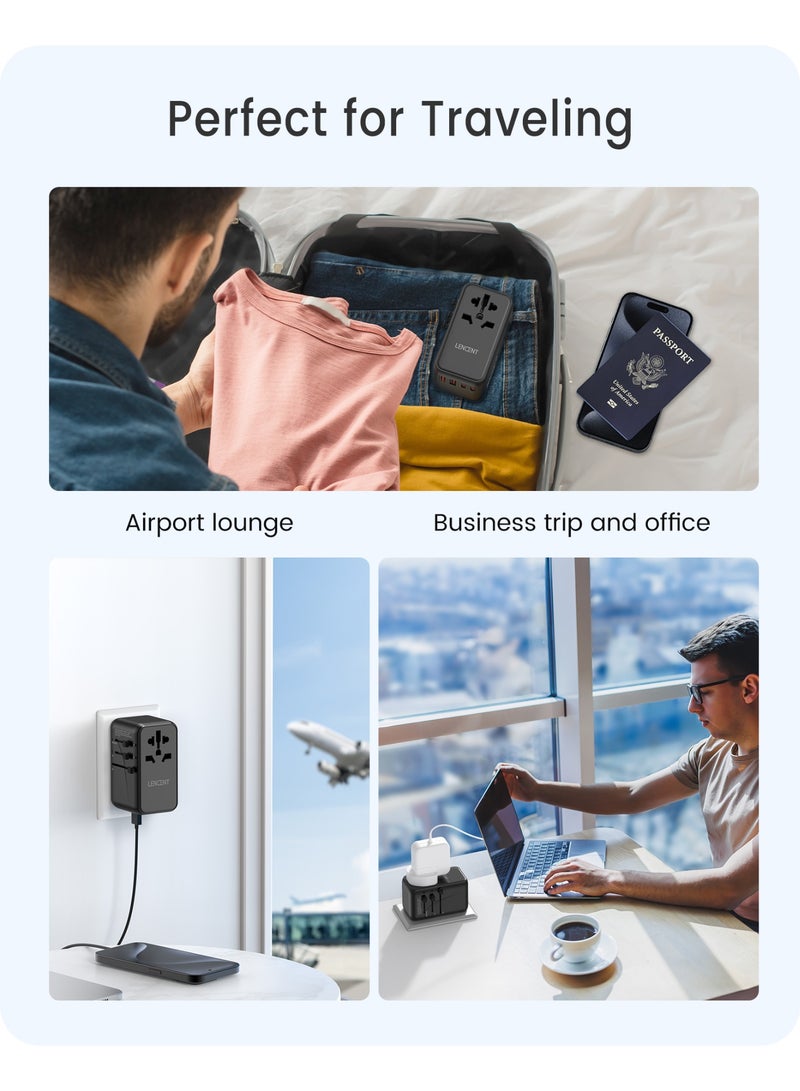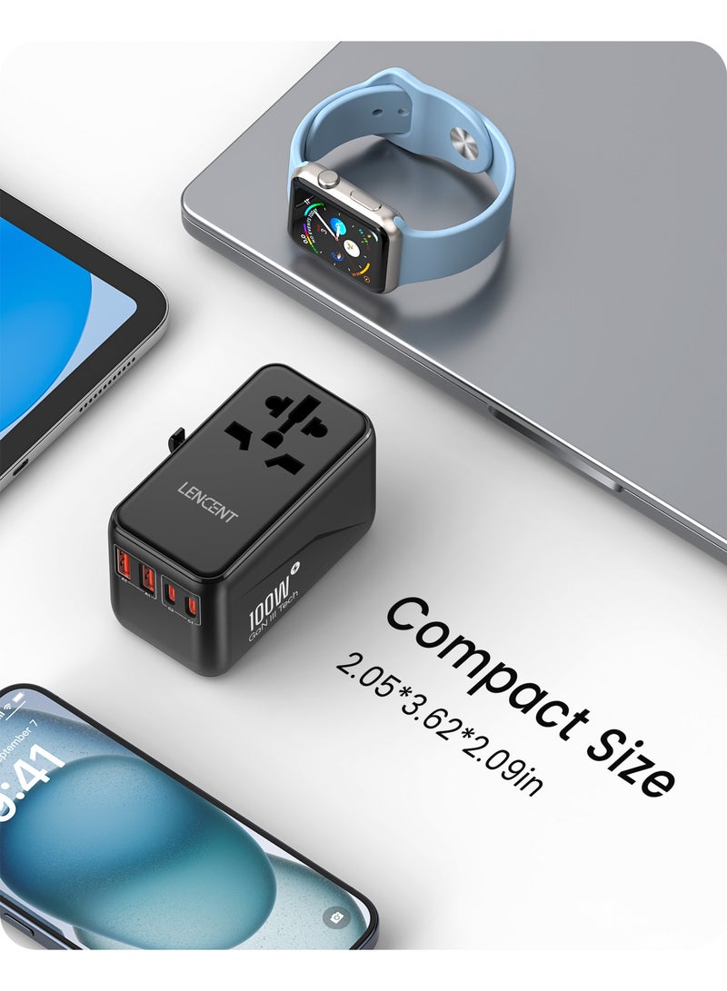 GaN III 100W Universal Travel Adapter, International Charger with 2 USB Ports & 2 USB-C PD Fast Charging Adaptor, Worldwide Wall Charger with Type-C Fast Charger for iPhone,Samsung,Laptops, Type A/C/G/I (USA/UK/EU/AUS)
