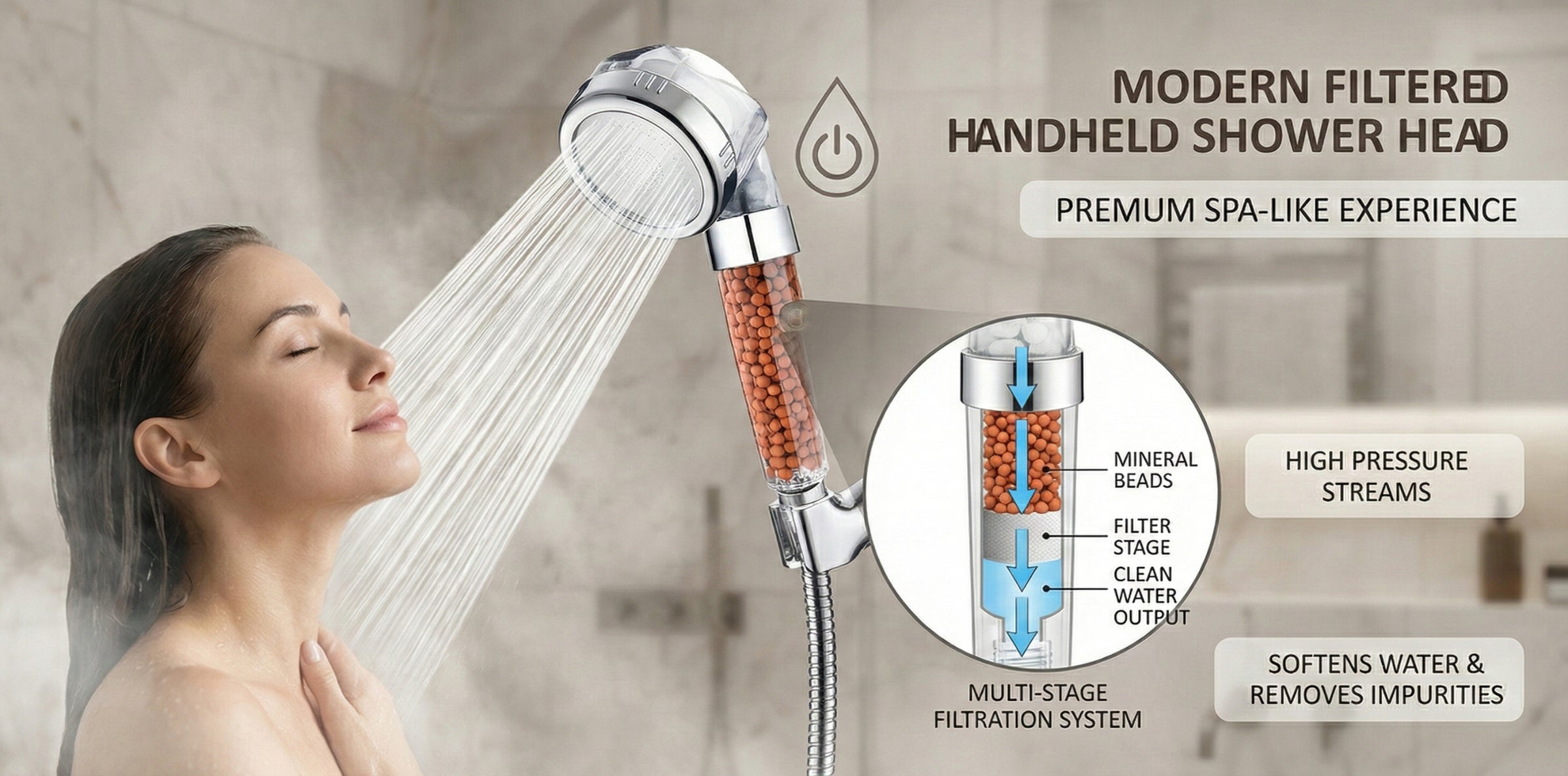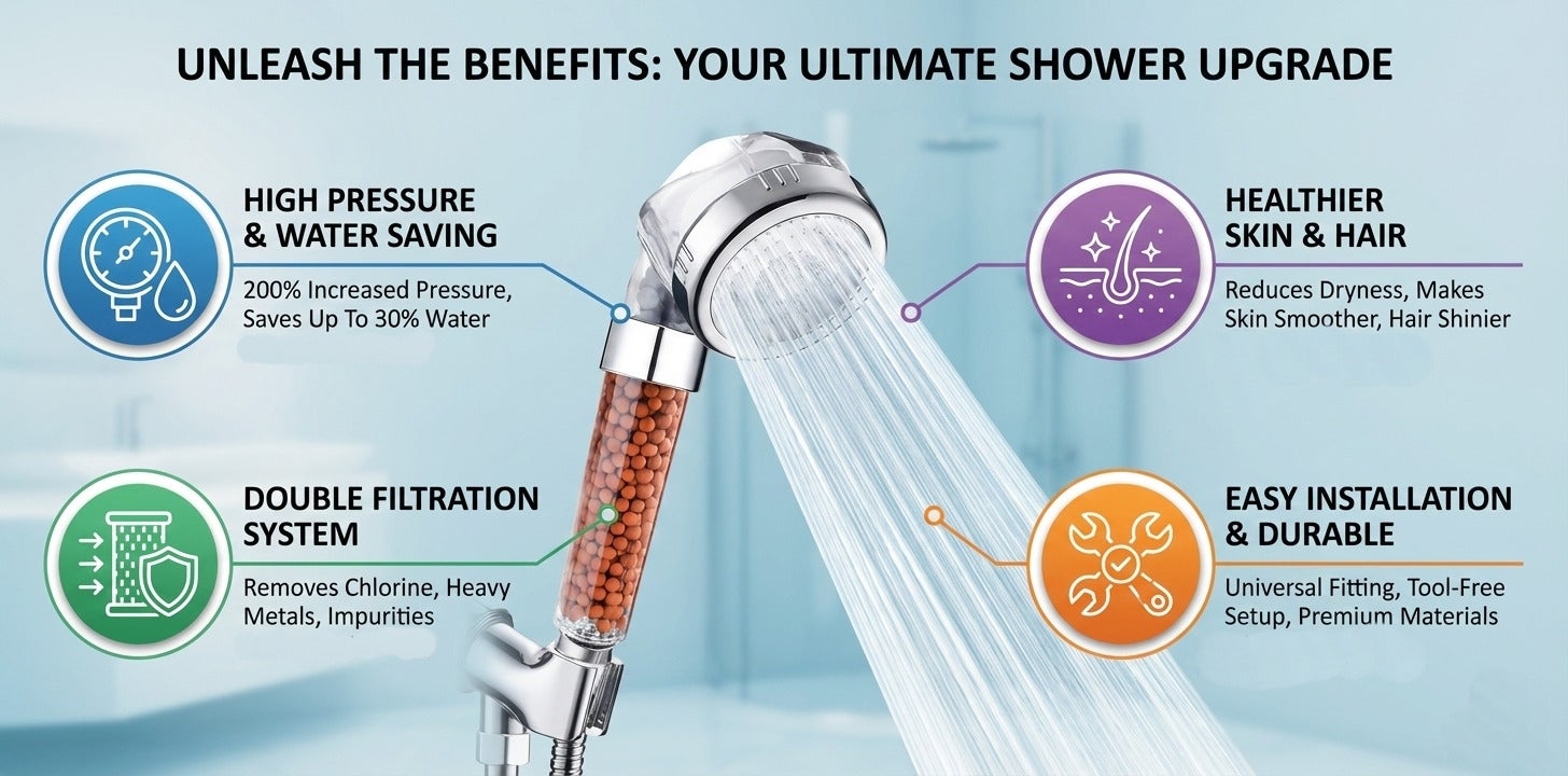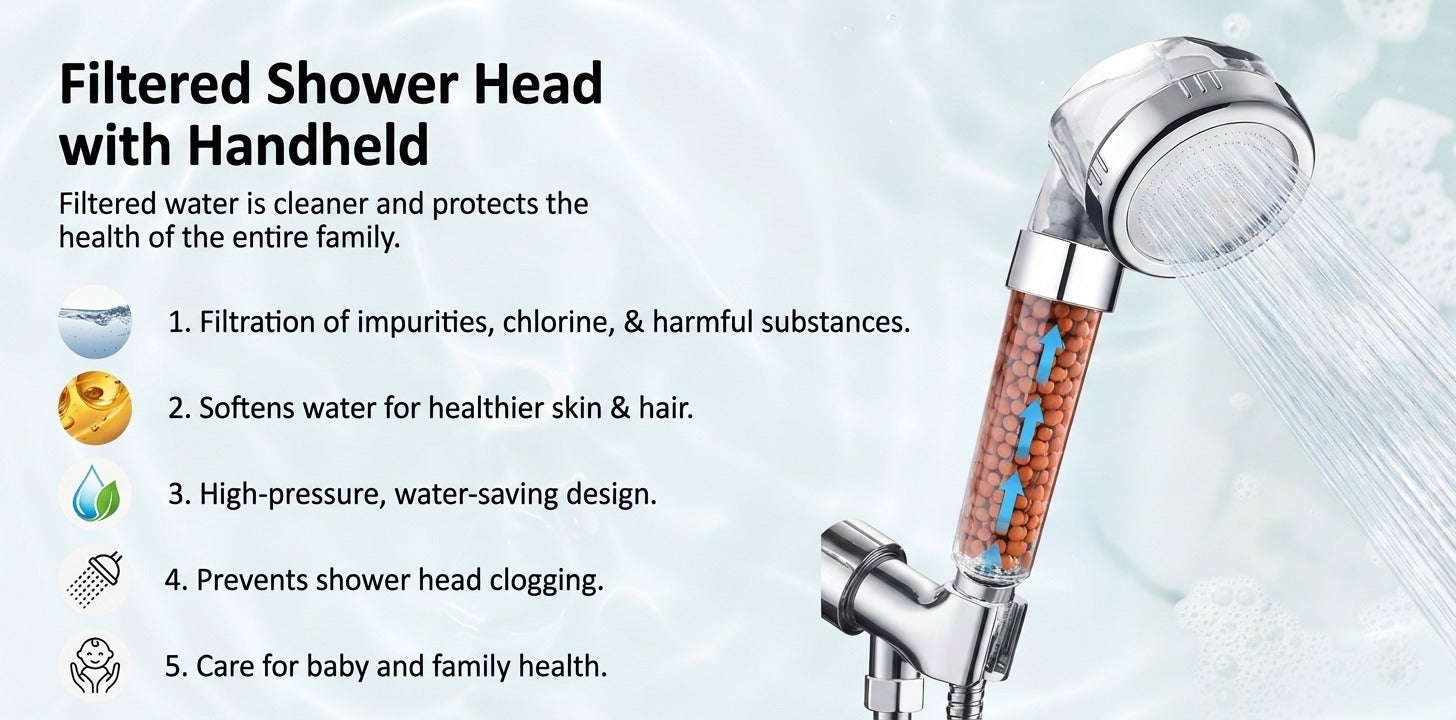 Introducing our high-quality shower head that offers an invigorating shower experience with high-pressure water flow. Made with advanced filtering technology, this shower head effectively removes impurities, chlorine, and harmful chemicals from the water to give you a refreshing and healthy shower. Its easy-to-install design makes it compatible with most shower systems, and its durable construction ensures long-lasting use. Say goodbye to dry skin and hair, and hello to a rejuvenating shower experience with our filtering shower head.