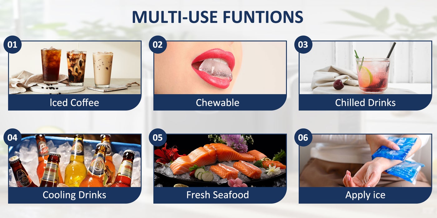 Note: Ice makers are different from freezers and cannot keep ice warm. Please be sure to use the ice in a timely manner.