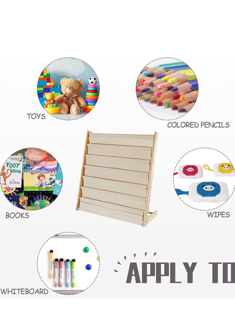 7 Tiers Large Capacity Organized Rack: Our bookshelf with 7 Tiers of large capacity bookshelf storage,measuring 75 x 30 x 79cm. The large storage space can be easily stored whether it is books, toys, building blocks, or dolls, keeping your kids' reading materials organized and accessible. Also a great organizer shelf for adults Books/magazines. Perfect for book storage in your toddler’s bedroom, playroom, nursery, or living room.