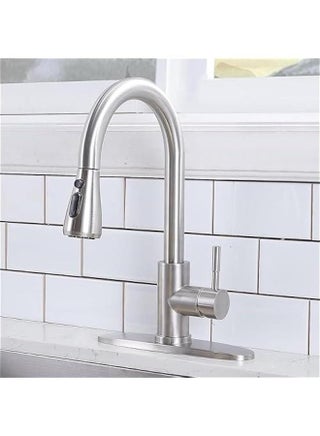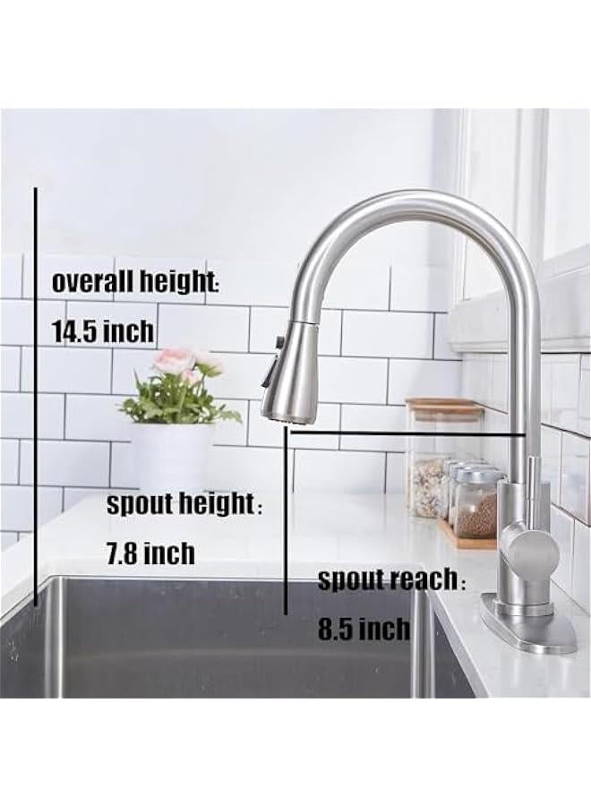 Kitchen Faucet with Pull Down Sprayer, Brushed Nickel Faucet for Kitchen Sink, Stainless Steel Single Handle Pull Out Kitchen Sink Faucet (Silver)
