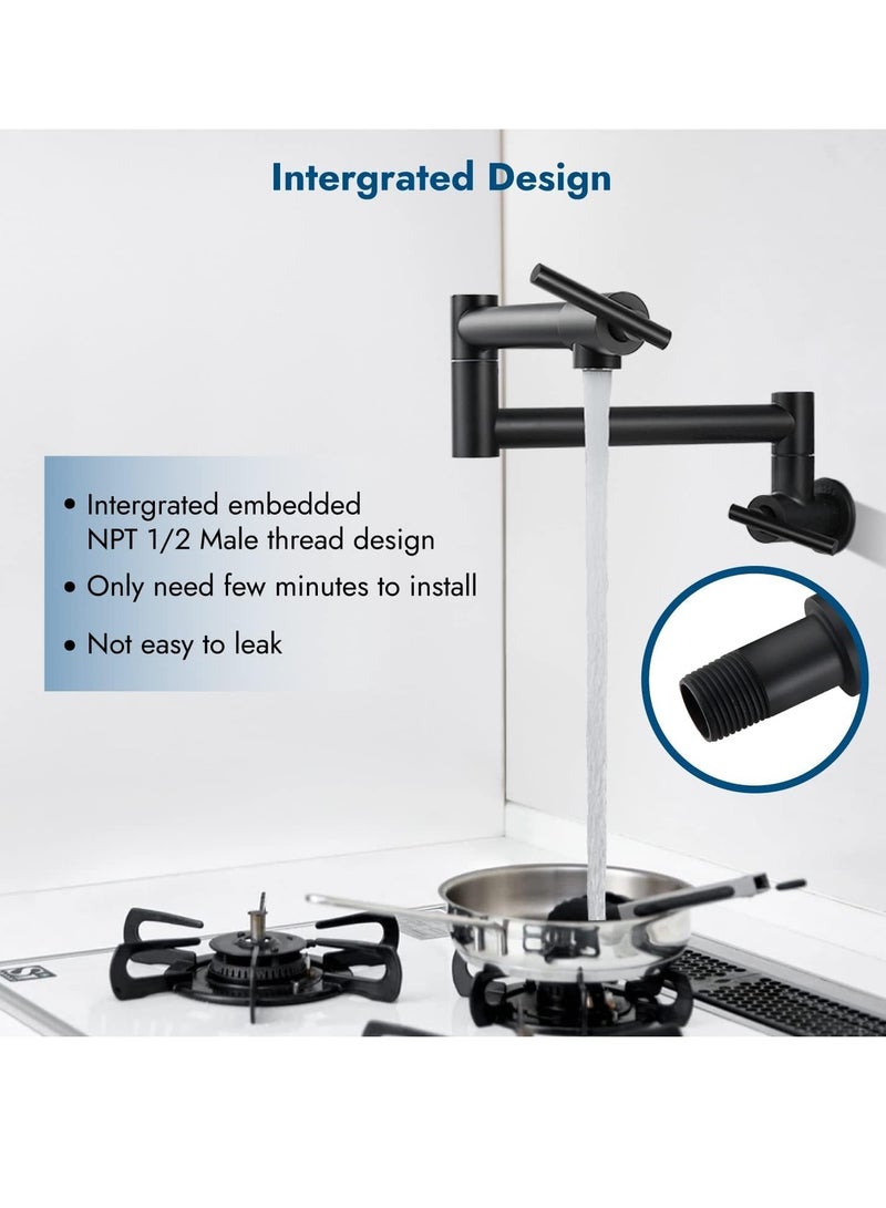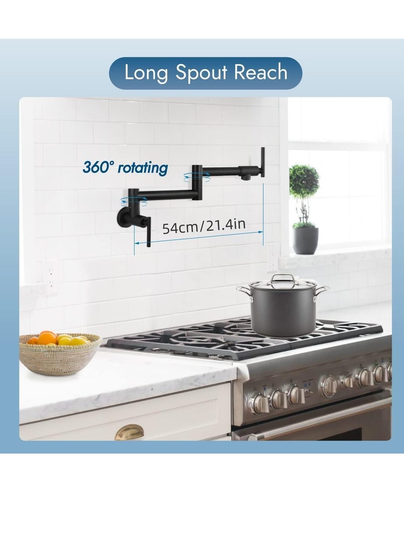 Kitchen Sink Faucet Wall Mounted,Rotatable Pot Filler Faucet Wall Mounted,Solid Brass Folding Stretchable Kitchen Faucet Single Hole Double Switch for Home Restaurant (Matte Black)