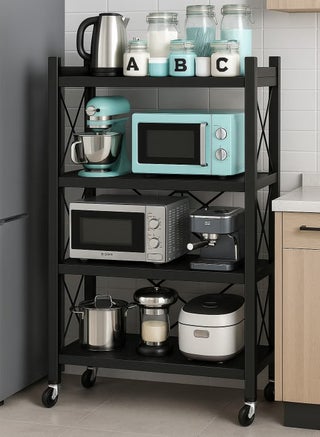 KITCHEN ORGANIZER WITH 4 FOLDABLE SHELVES, IRON FRAME AND WHEELS: Perfect for your kitchen space