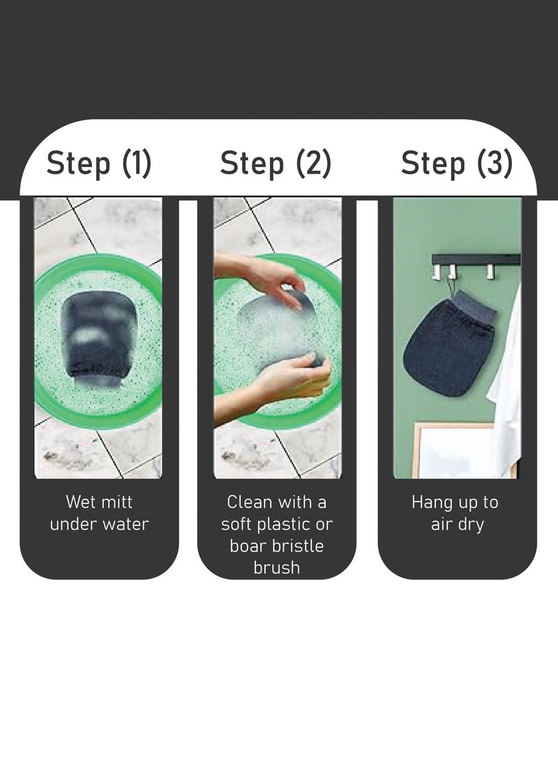 For the best results, soak your body in a bathtub for 10 minutes to soften the skin before using the glove. Use the glove in circular motions, focusing on rough areas. Rinse the glove thoroughly and hang it to dry after each use.