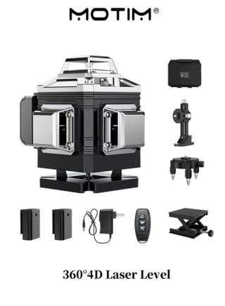 【Package Content】 1 x laser level 2 x 6800 mAh batteries 1 x drop-proof toolbox 1 x universal wall bracket 1 x universal swivel base 1 x lifting platform 1 x charger 1 x remote control 1 x multi-purpose adapter 1 x instructions.