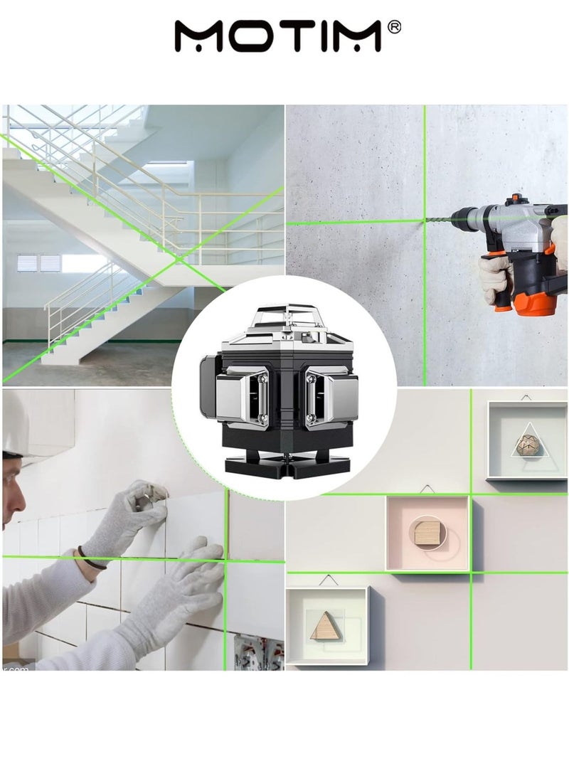 Laser Level Self Leveling 360°4D Horizontal/Vertical Line Laser Remote Control 16 Lines Green Beam Laser Leveler tool Kit for Tiling Floor Construction Picture Hanging