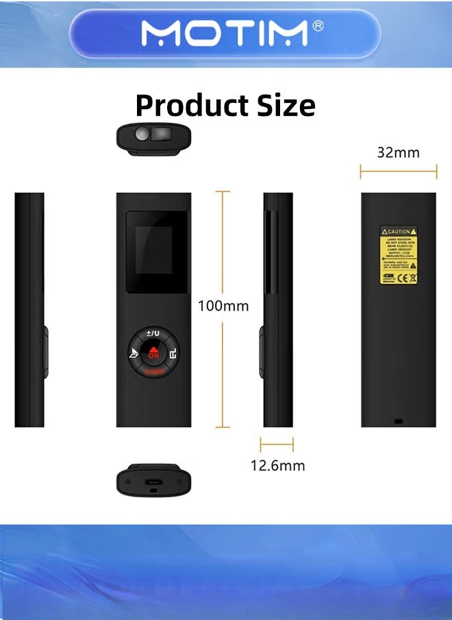 【USB Charging&LCD Backlight】laser distance meter has a USB charging port, You can charge it via USB. The LCD backlight design allows you to clearly read the data on the device screen even dark environment