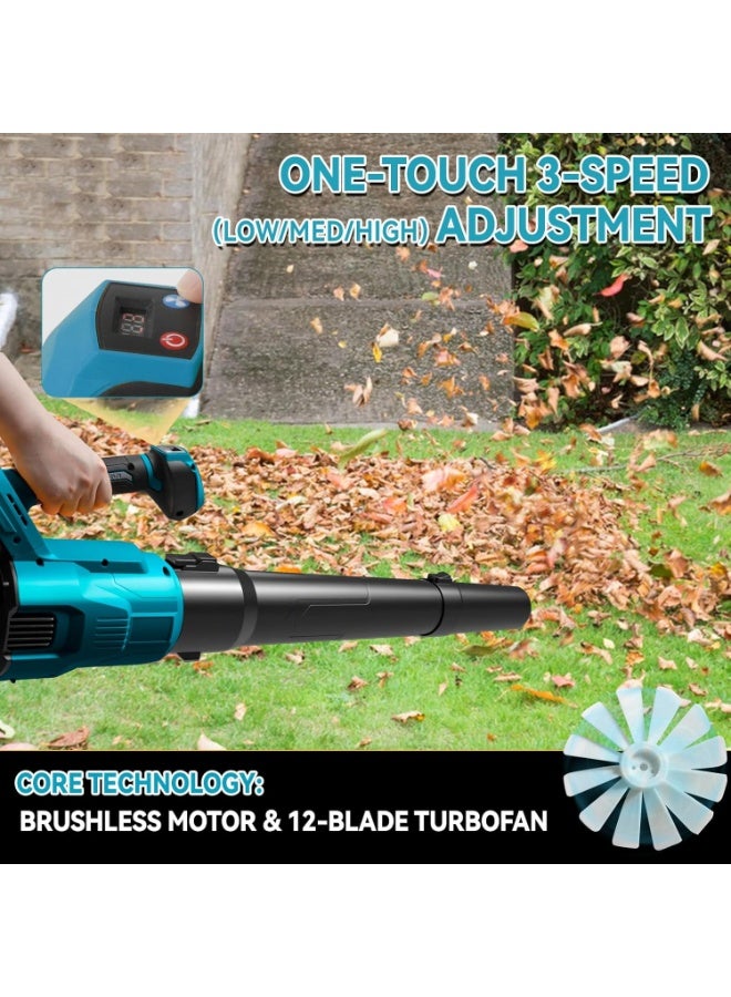Leaf Blower Cordless with 2 Battery and Charger, 580CFM/190MPH/28000RPM Lightweight Handheld Snow Dust 21V 3 Speed Modes Electric Blower for Lawn Care Patio Yard