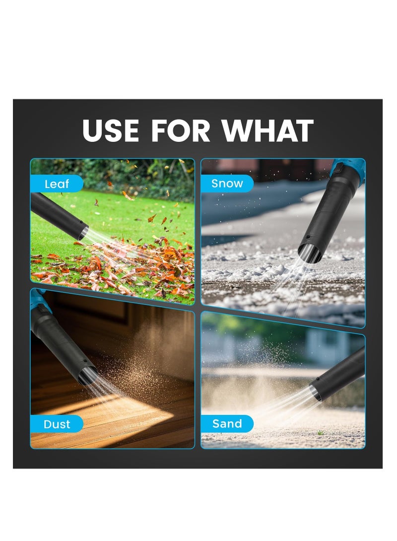 [High Speed Lightweight Leaf Blower] The maximum wind speed of the cordless leaf blower is 580cfm/190 mph/28000rpm.A higher wind speed can help us deal with stones and fallen leaves in wet weather during the rainy season as well as snowflakes covering other positions like the hoods of cars. Make your electric leaf blower usable all year round