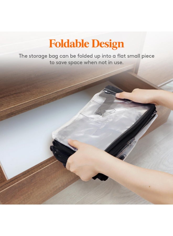 The clothing storage bags are made of high-quality PVC, which is very solid and can be used for a long time. The transparent design of the sheet storage is for easy storage and viewing; you can see and get what you want in a second, saving you time finding things.