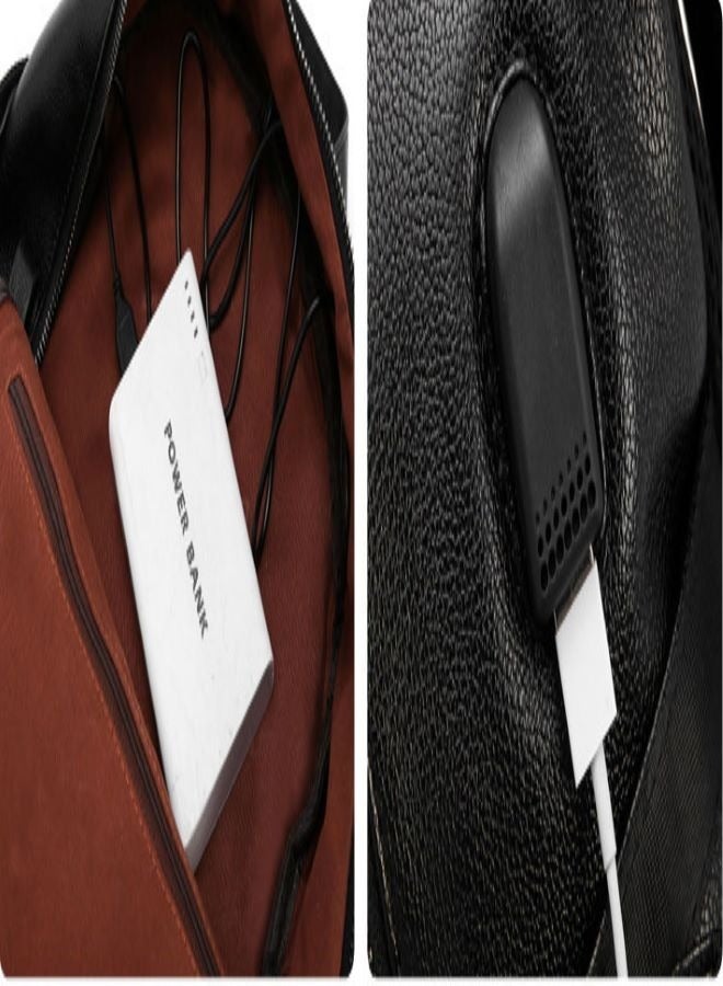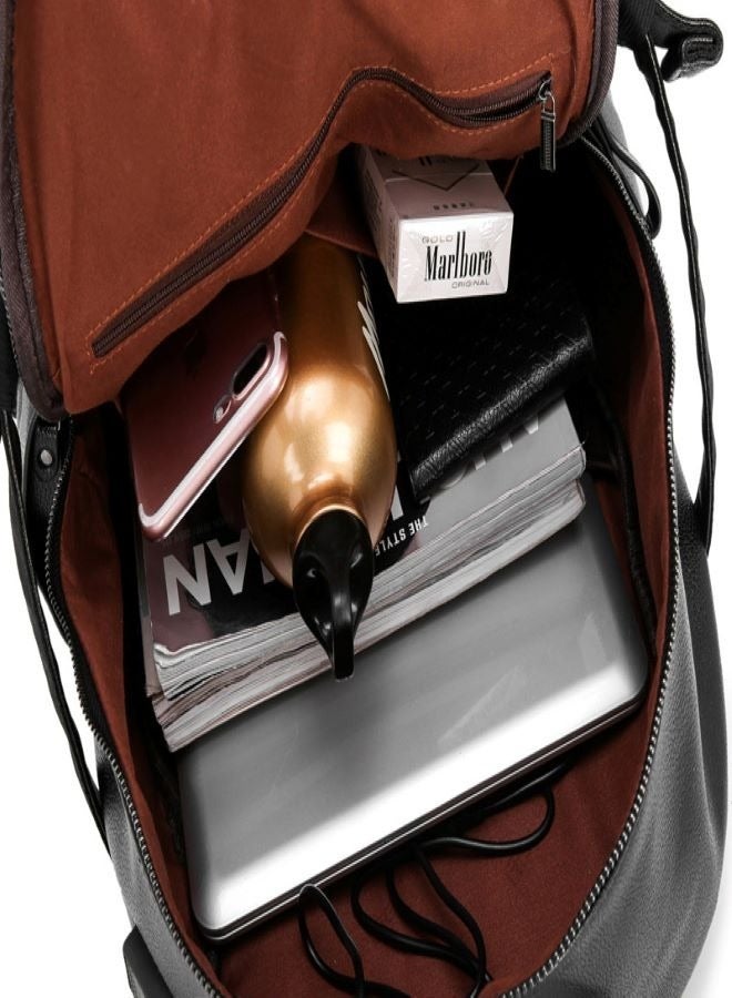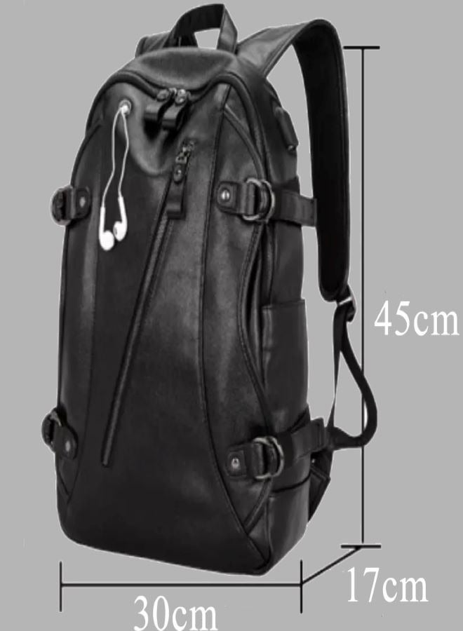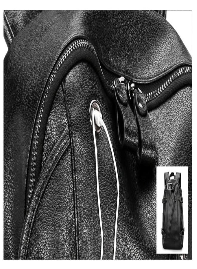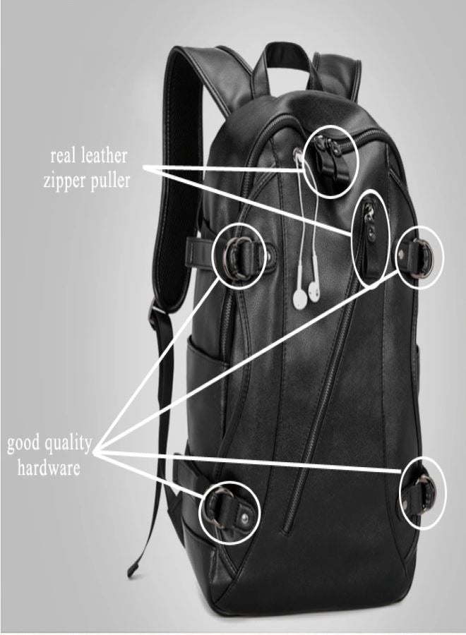 Big capacity popular PU leather fashion travel backpack with earphone hole