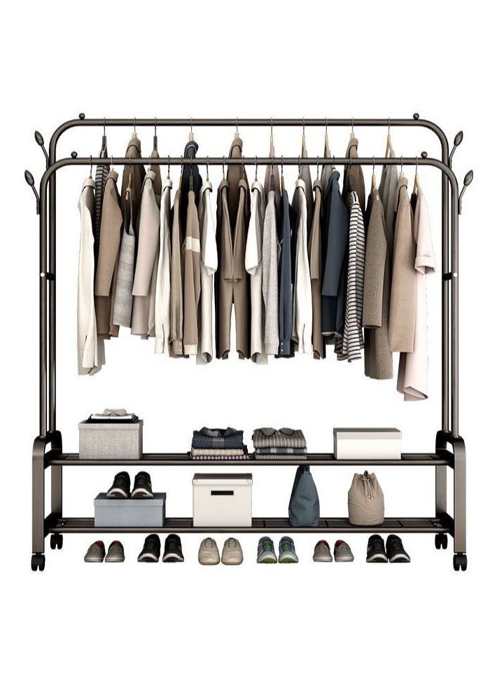 Make your clothes organization experience easy and enjoyable with this wheeled clothes rack. It combines functionality and style to perfectly meet your clothing storage needs. 2 in 1 Design for Ample Space: Perfect rack to organize your everyday outfits or to arrange your seasonal closet. There are two long enough hanging rods that give you the ability to keep all your clothes organized, in the case of being scattered all around the room. In order to maximize space utilization, it adopts one wide bottom storage shelve, allowing you to store shoes, bags, hats and more. The living surrounding is neater, life is happier.