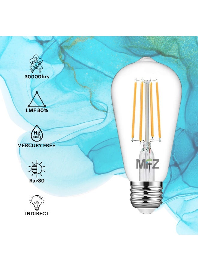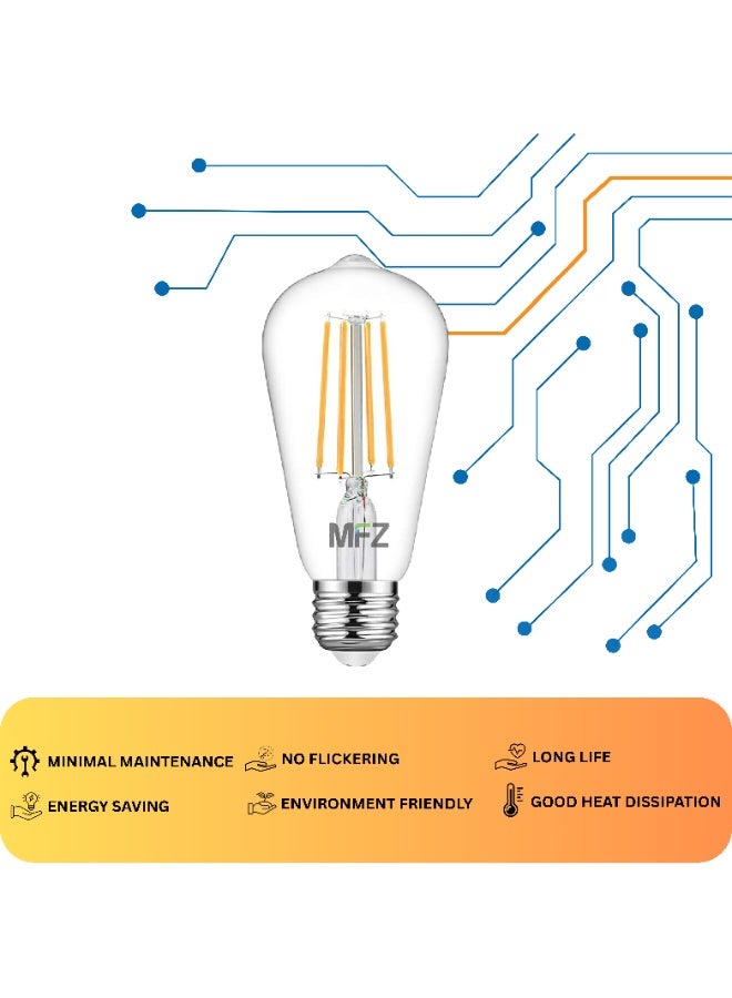 Upgrade your lighting with the MFZ 8W LED Filament Bulbs featuring a plain clear glass design for a clean and modern vintage style. Emitting a soft 2700K warm white glow with 800 lumens, these bulbs are perfect for bright yet cozy lighting in any room.
