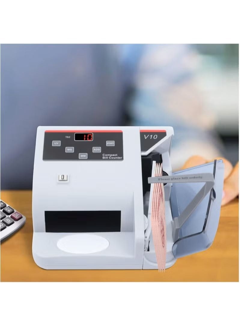 Mini Portable Currency Counter,V10 Bill Counter Multi-Currency Counting Machine with UV/MG/WM Counterfeit Detection 900pcs/min,100-240V LCD Display
