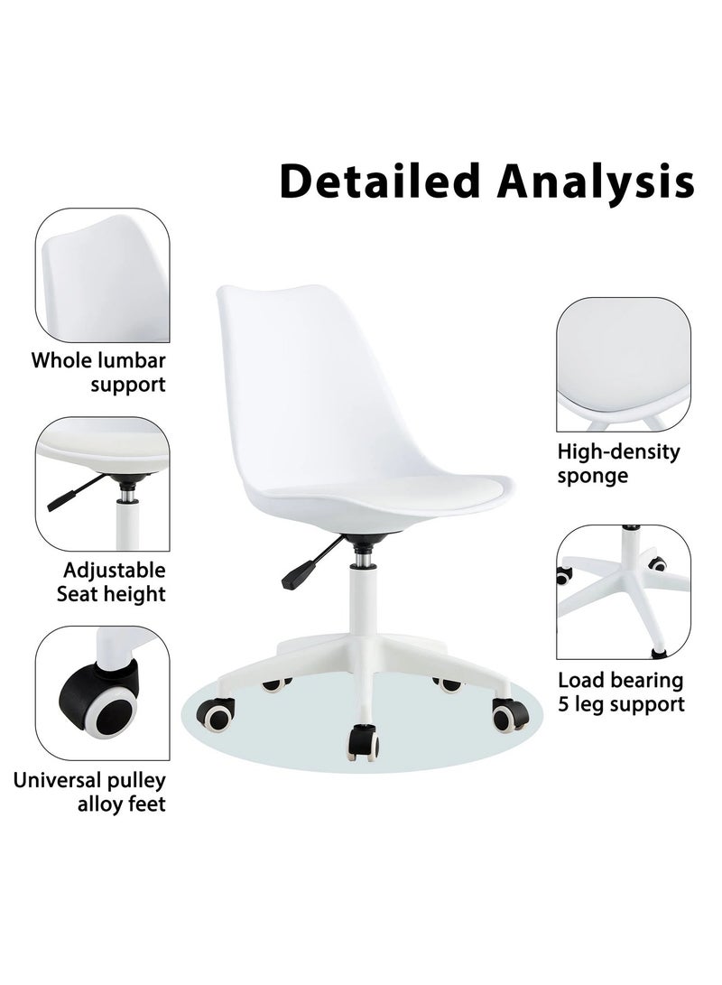 Upgrade your workspace with the Modern Office Desk Armless Study Chair, designed to provide maximum comfort and functionality. This ergonomic chair features a segmented, compression-resistant design that perfectly fits the natural curve of your back, offering excellent lumbar support and relieving pressure on your hips and legs. The armless design enhances flexibility and maneuverability, allowing you to move freely and adjust your position with ease. Crafted from waterproof PU leather and a thickened sponge cushion, this chair ensures a soft, comfortable, and durable seating experience. The silent universal wheels provide smooth and quiet movement, making it ideal for both office and home environments. With adjustable height (10cm range) and 360-degree rotation, this chair allows you to customize your seating position for optimal comfort and accessibility. The easy assembly process, complete with detailed instructions and all necessary accessories, ensures a hassle-free setup. Practical Applications: Office: Perfect for long hours of work, providing ergonomic support and comfort. Study: Ideal for students or anyone needing a comfortable chair for studying or reading. Home Use: Great for use in living rooms, bedrooms, or any small space. Conference Rooms: Suitable for meetings and conferences, offering flexibility and ease of movement