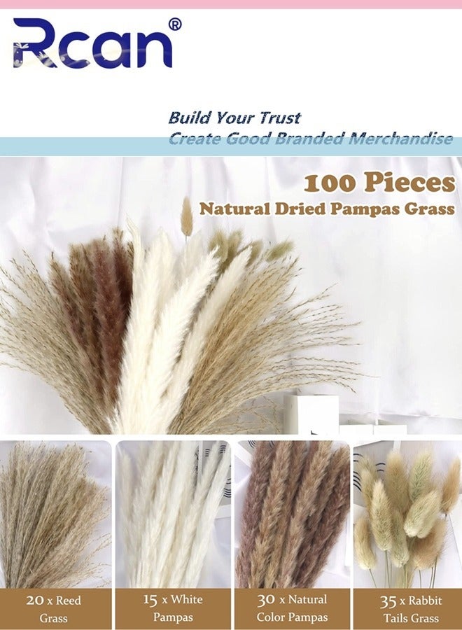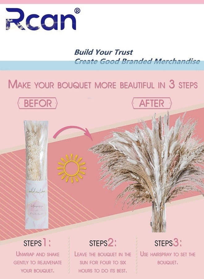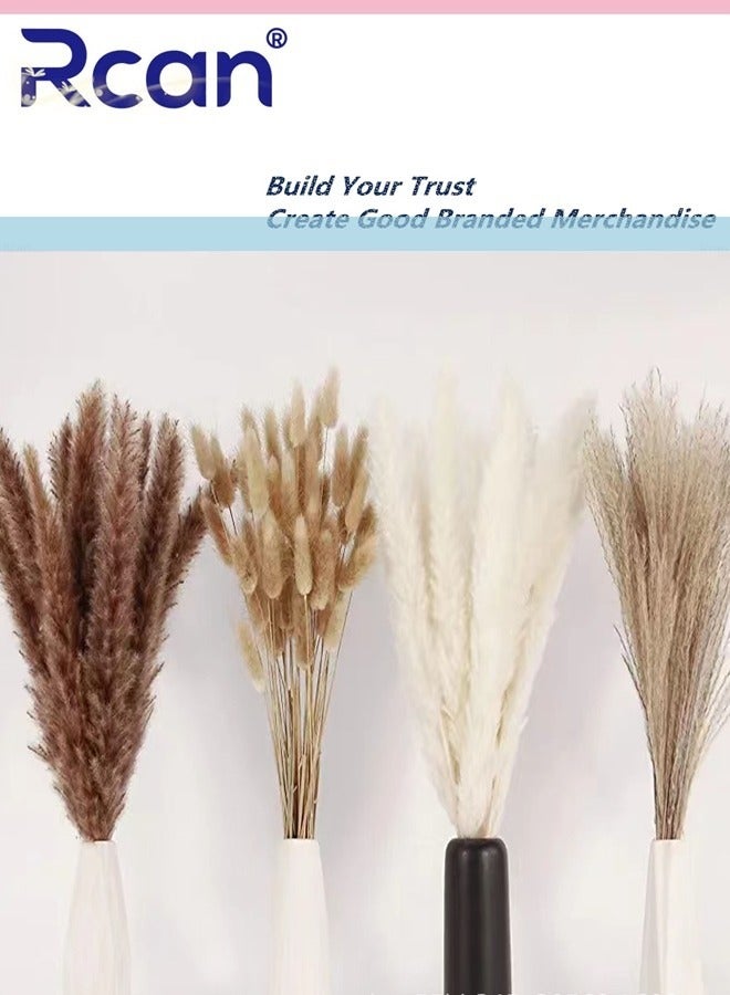 2. You will get 100 brown pampas grass, each pampas grass decoration is about 17 inches high, and about 100 natural dried flowers of 4 different pampas grasses are carefully selected for you to match and decorate, including 20 pieces of reed grass, 15 pieces of white dried pampas grass, 30 pieces of * brown dried pampas and 35 pieces of natural rabbit tail pampas.