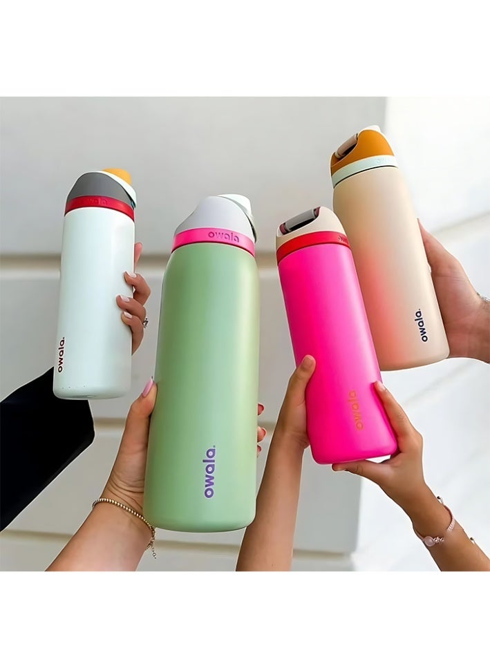 This Owala FreeSip 946ml Insulated Stainless Steel Water Bottle features the innovative FreeSip spout design, offering a dual drinking experience. Whether you prefer sipping elegantly through the built-in straw or tilting the bottle for a bold swig, it caters to your needs. The bottle is equipped with leak-proof protection, with a push-to-open lid and a built-in lock ensuring the spout and lid stay clean and preventing any leaks, providing a refreshing sip every time. Its stylish Macaron Strawberry color is not only attractive but also features a portable design with a convenient carry loop and lock function, ensuring the bottle stays secure during sports or travel. With double-wall insulation, it keeps your drinks refreshingly cold for up to 24 hours, making it perfect for hot weather. The wide mouth design makes cleaning and adding ice cubes easy, while the bottom is cup holder-friendly for added convenience. Made from BPA-free, lead-free, and phthalate-free eco-friendly materials, the bottle is safe and healthy for everyday use. The lid is dishwasher-safe, while the bottle is recommended for hand washing, offering an easy and convenient cleaning experience. Ideal for all occasions requiring cold retention, the Owala FreeSip Water Bottle is your perfect choice.