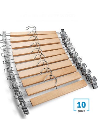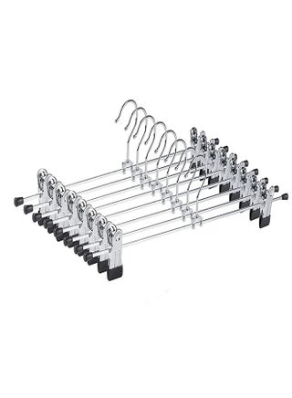 Pants Hangers with Clips Non-Slip Clothes Hangers 10 Pack Adjustable Jeans Skirt Hangers Clothes Hangers Coat Hanger Metal Pants Hangers with 360° Swivel Hook