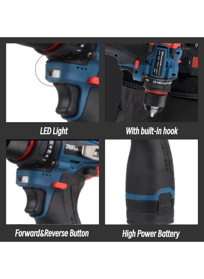 TriThardware Power Impact Drill Cordless, Electric Power Drills Set with 2pcs Batteries and Charger and 22pcs Accessories