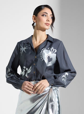 A very slight sheerness for a luxe and lightweight feel but solid enough for everyday work wear, scattered with iconic NFD motifs in a silver print that adds a touch of excitement to our Miley shirt.