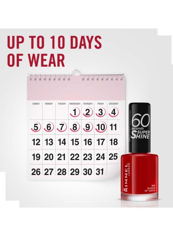 Want the London look? Gloss up those tips with 60 Seconds Super Shine nail polish. You'll be on your way in no time, thanks to 3 in 1 Colour Technology that delivers ultra shiny colour along with a base coat and glossy top coat -- all in one stroke. And it dries in under a minute! If you love to change your polish often, 60 Seconds Super Shine is ideal. Perfect for day or evening, for work or a special night out. Long lasting 60 Seconds Super Shine resists chips and fading for up to 10 days. Apply to nails with a downward stroke. For a more intensely coloured finish, add an extra coat. 60 Seconds Super Shine dries so quickly there's practically no down time. Why not pick up an extra bottle to surprise your best friend or your mum? Rimmel London is an inner confidence that how we look is always cool, irreverent, never predictable and always evolving. Rimmel is not perfection or intimidating, it is like London : young, urban, eclectic, edgy. It is expression with no rules, it is real, it is accessible. Live the London Look.