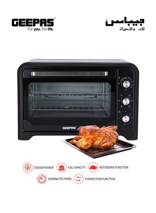 ROTISSERIE FUNCTION - With this 42L oven, you have the unique opportunity to taste delicious meat from the fire, while at home. The kit with the device includes special accessories for rotisserie cooking. All you need to do to get a delicious chicken or steak is to string the meat on a long hard core and place it in this mini grill.