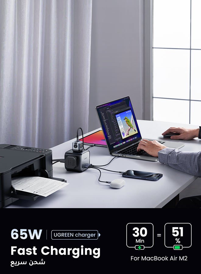 【Advanced GaN, Fastest Charge】: Powered by GaN III chip, UGREEN Nexode GaN Charger delivers 65W high-speed power for all your laptops, tablets, and smartphones. The 13" MacBook Air 2022 is fully charged in less than 1.5 hours.
