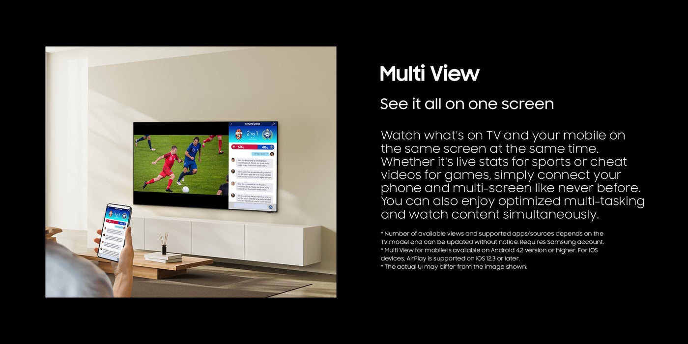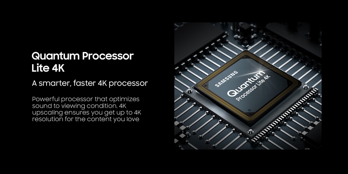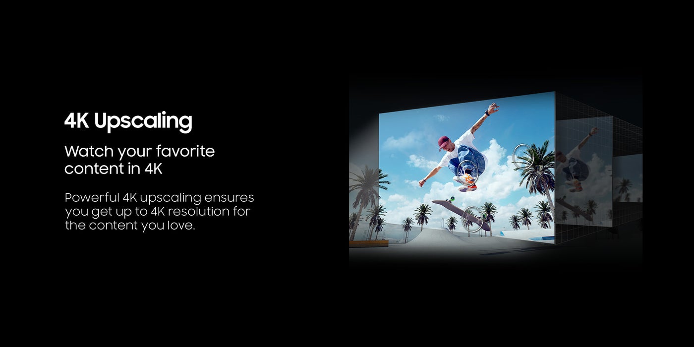 Samsung’s powerful quantum processor with deep learning creates the most precise and adaptive experience you can imagine. Scene-by-scene, the processor optimizes to your viewing condition and improves your content. Powerful 4K AI upscaling ensures you always get full 4K resolution