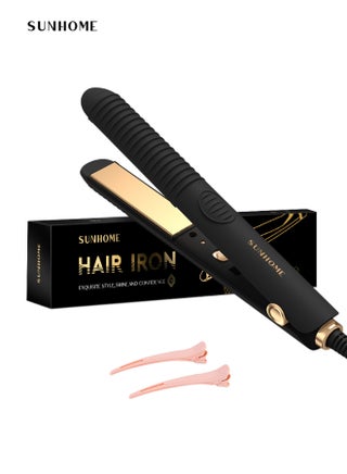 Fashionable Appearance: Featuring a sleek black design, showcasing a blend of simplicity and style for a personalized touch during everyday carry. Lightweight and Portable: Compact and lightweight design for easy portability, making it an ideal choice for travel, office use, or daily touch-ups on the go. Metal Layer Material: Crafted with a durable metal layer material that not only ensures robustness but also prevents hair damage, offering a thoughtful hair care experience. Straightening/Curling Capability: Unique design allows for quick straightening and effortless curling, meeting diverse styling needs with ease. Rapid Heating: Incorporates advanced heating technology for quick temperature rise, saving time during your hair care routine. Instructions for use: A power device is not a toy. After use, store it out of reach of children Keep packing material (plastic bags carton, etc) out of reach of children. The appliance is not suited for persons (as well as children) physically, mentally, sensory disabled, or with no experience, unless they have been supervised or di rected by someone responsible of their safety. Children should be supervised to make sure they do not play with the appliance.