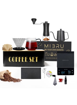 Experience complete professional coffee brewing at home or on the go with the MIBRU Professional V60 Coffee Set. This all-in-one set includes everything a specialty coffee lover needs to brew rich, balanced coffee—from precise measurement and consistent grinding to controlled pouring and stylish presentation. Every tool is designed for ease of use and to achieve the best possible coffee experience.