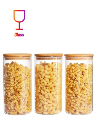 Set of 3 3 pack 56.1oz glass food containers meet you storage need. They can collect pasta, nuts, flour, candies, cereals, spices and other small things. Your pantry and kitchen will look well-organized with these containers!