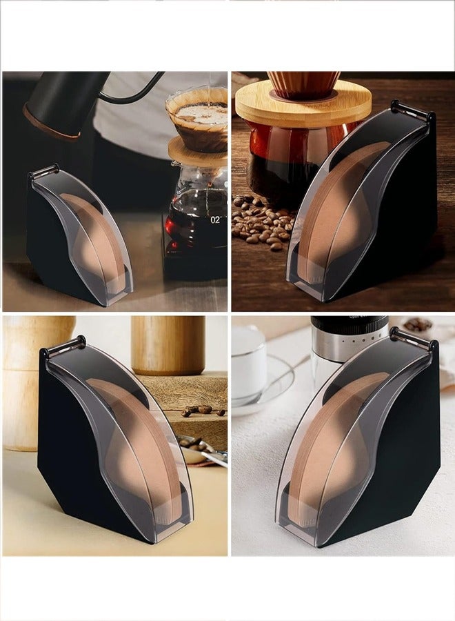Coffee Filter Holder, 1 Pack Coffee Filter Paper Holder Cone Coffee Filter Paper Holder with Dustproof Cover, Storage Capacity of 100pcs Coffee Filter Paper (Black)