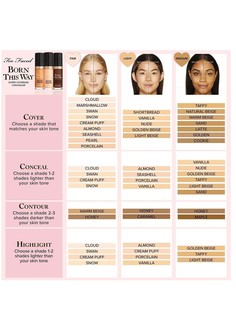 Ingredients This multitasking, hydrating concealer with a buildable formula covers, smooths, and sculpts the skin with a natural look. Infused with coconut water, alpine rose, and hyaluronic acid, skin-beneficial ingredients come together for a weightless formula that won’t cake or create lines when applied to the skin, for a flawless, natural-looking complexion that looks like you were born this way.