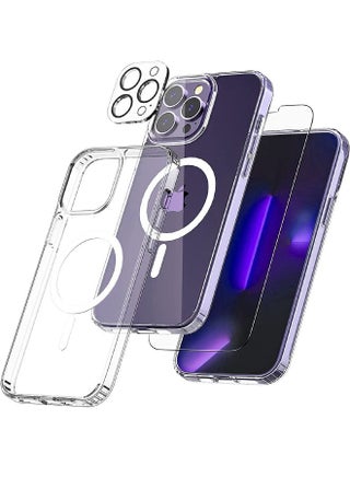 iPhone 15 Pro Case, with 9H Tempered Glass Screen Protector + Camera Lens Protector, Ultra Thin Scratch Resistant Drop Anti-Yellowing Magnetic Phone Case for iPhone 15 Pro 2023