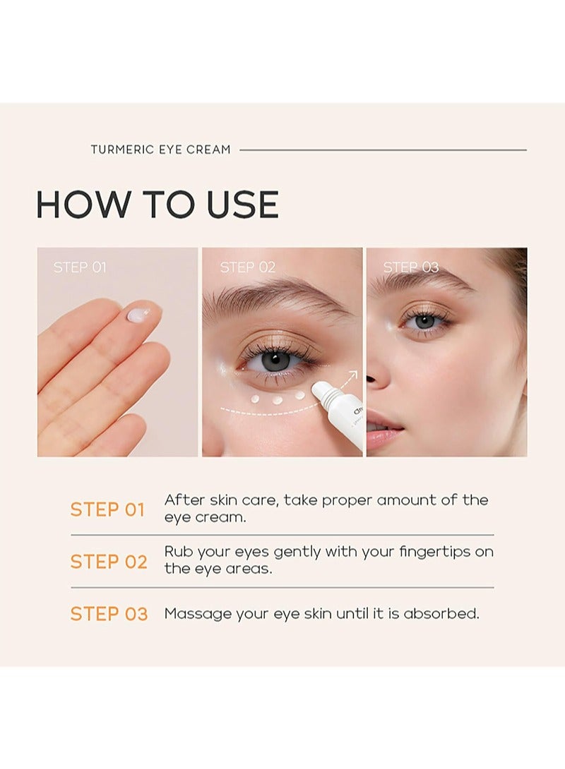 【Turmeric Under Eye Cream】Infused with vitamin C and natural turmeric powder, this turmeric eye cream for dark circles minimizes expression lines and wrinkles, and sagging skin and helps reduce the appearance of dark circles and puffiness around the eyes and enhances skin elasticity