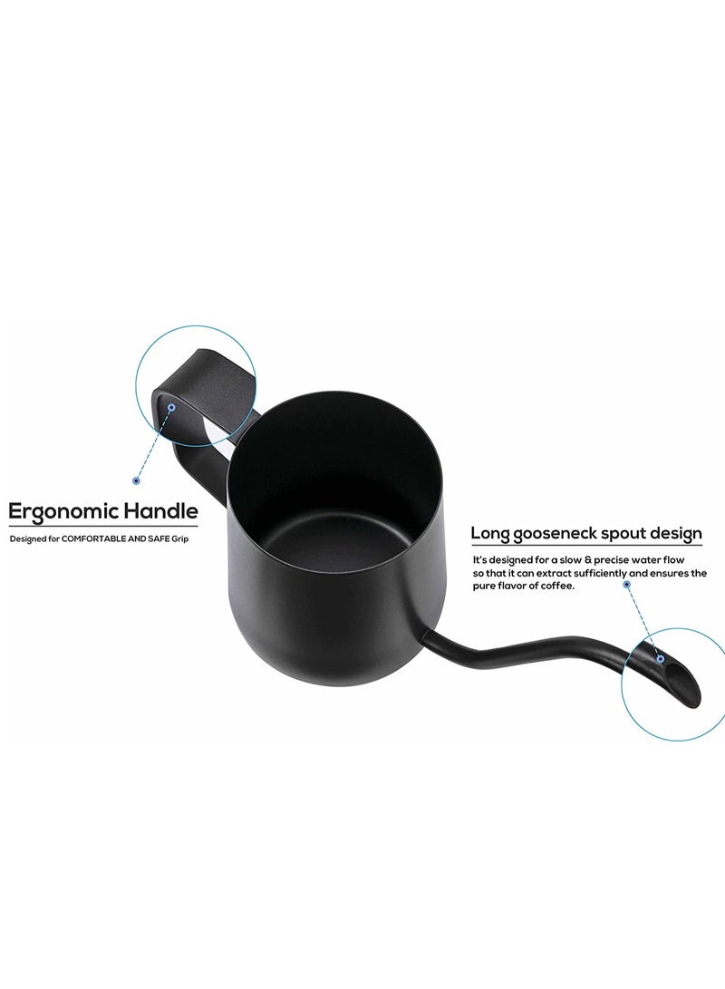 ☕【GOOSENECK POUR OVER】 The gooseneck nozzle and professional fine tip design allows steady control of the water flow speed, flow size and direction. Convenient for users to observe the outflow point of the water flow, precise pour. As the nozzle is narrow, water will naturally and slowly pass through the ground coffee, making a rich cup of coffee. Unique 4mm narrow gooseneck spout ensure precisely pouring that every coffee powder get the same amount of hot water when brewing coffee. ☕【PRECISION POURING】 Unique Gooseneck Design that precisely controls the flow of water to your ground coffee evenly. The spout is Very Accurate and allows smooth water flow, essential for the Perfect Hand Drip Coffee. Please pour slowly, to avoid water overflowing from the kettle itself ☕【 MODERN DESIGN】 An easy grip handle for Steady and Precisely Controlled water flow, pour hot water more Safely and Efficiently. Durable Teflon Coating is Tough Enough for Home Use, Outdoor Camping, and Picnic. ☕【CLASSIC STYLE】The Sleek Gooseneck Spout and the Firm Handle are crafted to make a Gorgeous Addition to any household kitchen. It’s perfect for personal use, or entertaining guests. ☕【HIGH QUALITY】Made of Thick 304 Stainless Steel material. We never compromise on quality, service or your happiness! With proper care, it stays rust-free and functional for many years to come. ☕【TEFLON COATEDT】Coffee pot body coated with Teflon inside and outside, smooth and non-stick, healthy and easy to clean.The coffee pot is rust free and easy to clean. You can wash it with warm water or put it in dishwasher.This portable cup can not only use for making coffee, also good for tea. You can use it at home, in the office, outdoors, just enjoy your leisure time with this small pot. ☕【SLIM】The slim and long spout,S-shaped body is not only for the sake of pleasing,it is to better control the flow of water,make the water column smooth and uninterrupted,fully extract,not waste a drop of coffee,even for beginners can easily operate,very Easy to operate,you will soon be able to enjoy a cup of fragrant coffee. ☕【GIFT IDEA】 Perfect to be a gift for your family or friend, bring fragrant coffee for your beloved one, enjoy a better life.