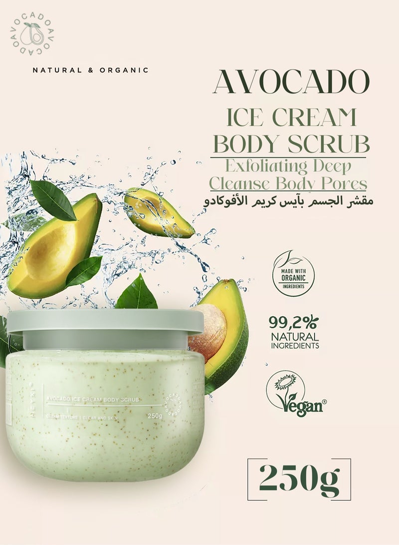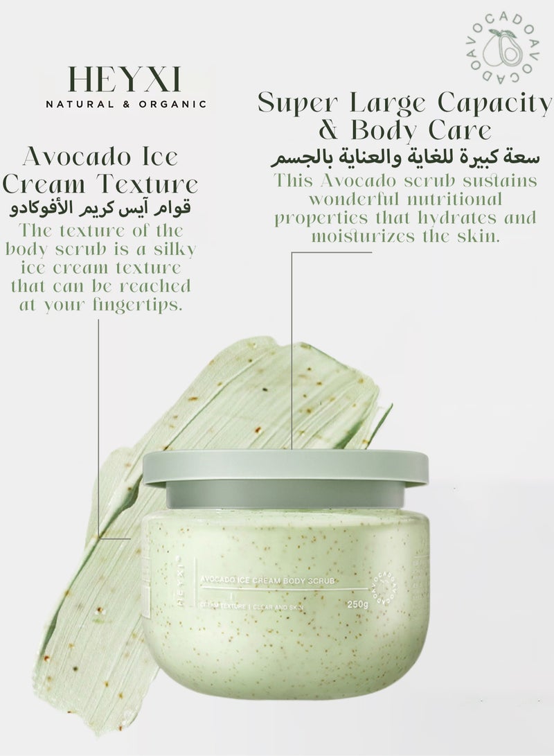 NATURAL Avocado Body Ice Cream Scrub With Glycerin, Shea Butter And Avocado Oil | Exfoliating Body Scrub For Skin Care, Stretch Marks, Acne, Cellulite | Body Scrub Exfoliator | 250g